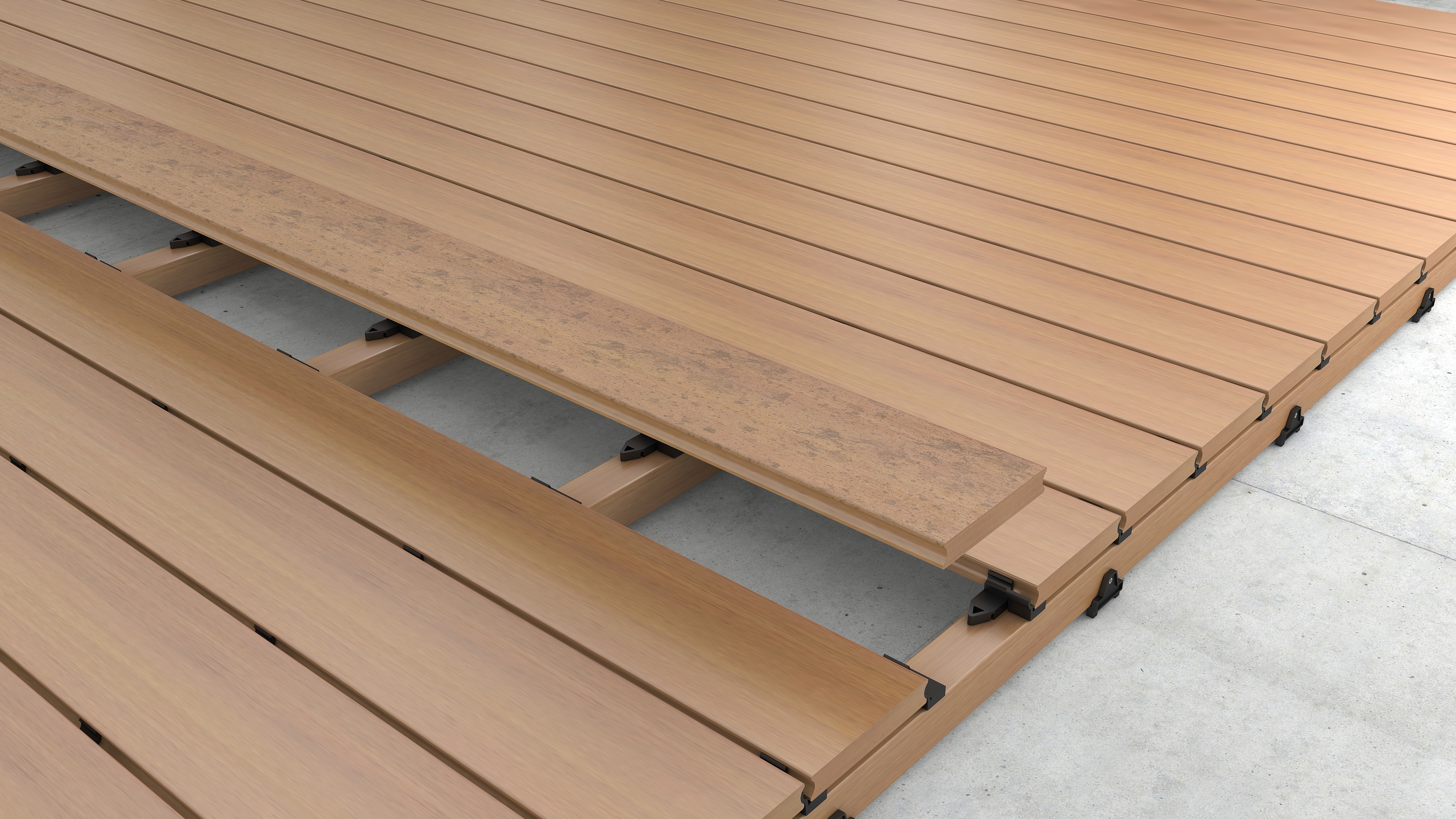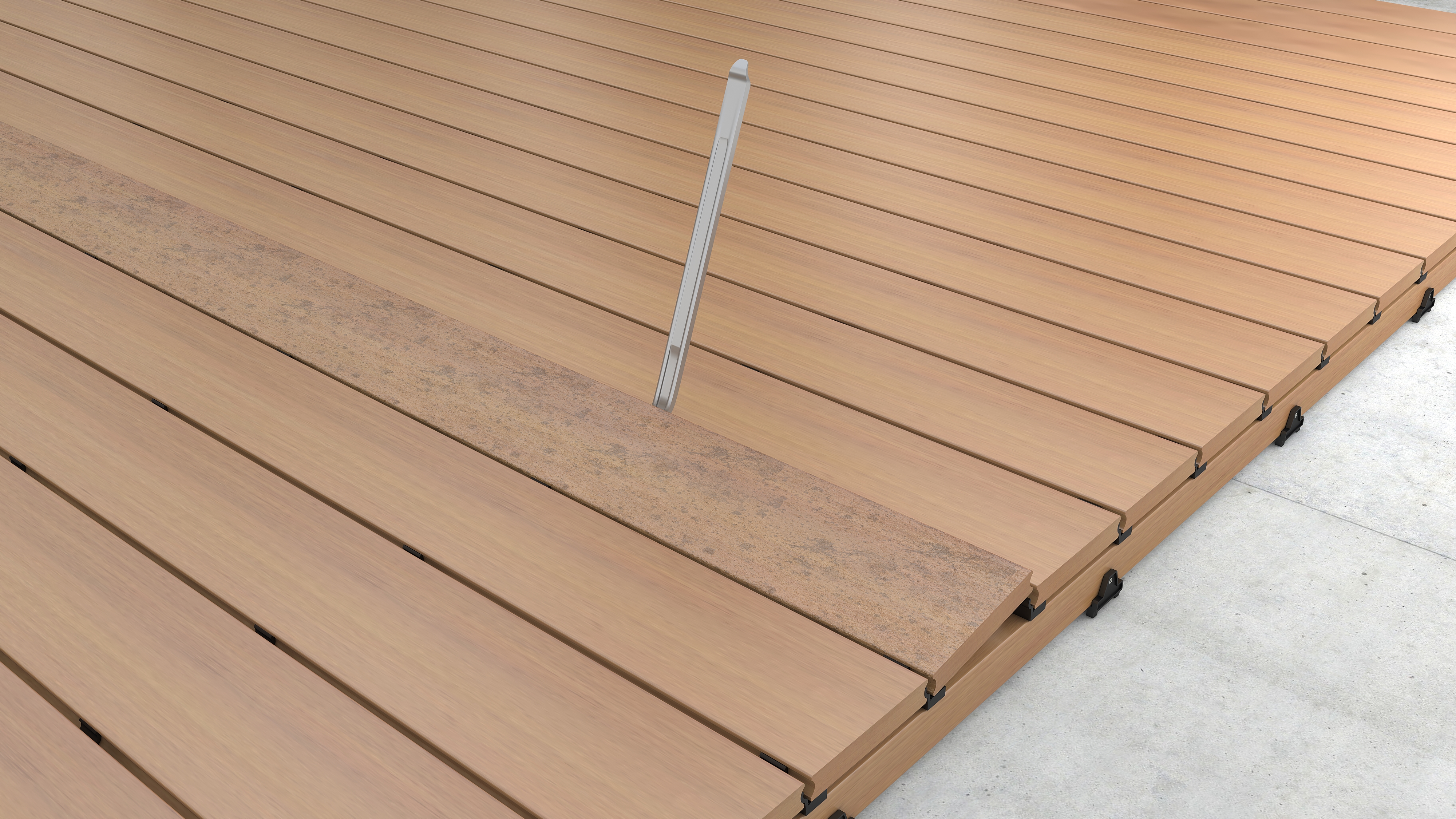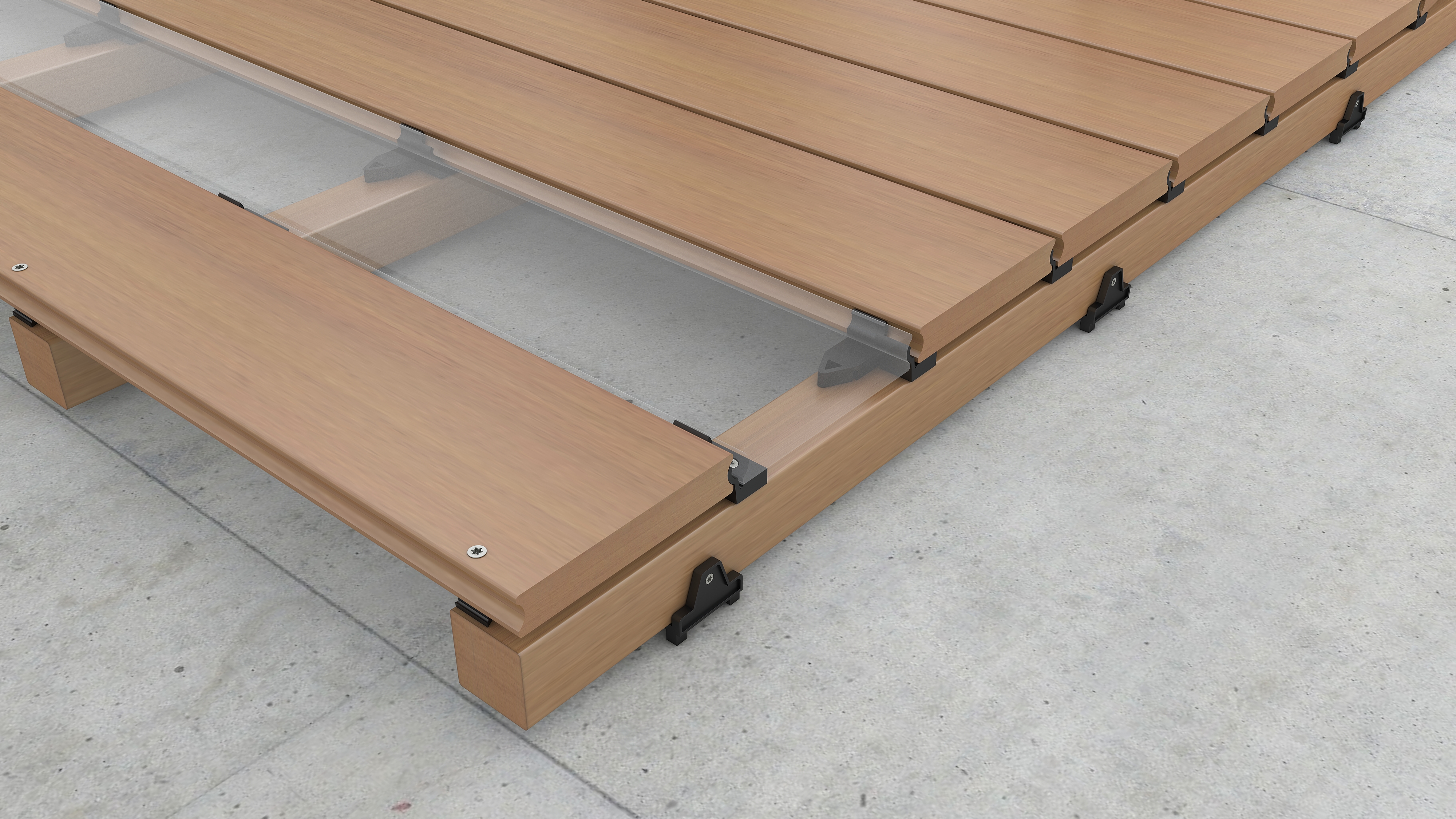 Teni, polioksimetilen POM'dan yapılmış, UV ve hava koşullarına dayanıklı, çok kolay ve basit kurulum sağlayan modifiye edilmiş bir başlangıç ve bitiş klipsi türüdür. Sistem birbirinden bağımsız iki koldan oluşmaktadır. Kolların bir tarafı tahtayı yerine sabitlemek için diğer tarafı ise ahşabın genleşmesini ve büzülmesini emmek için serttir ve deck tahtaları arasında 6mm boşluk oluşturur.