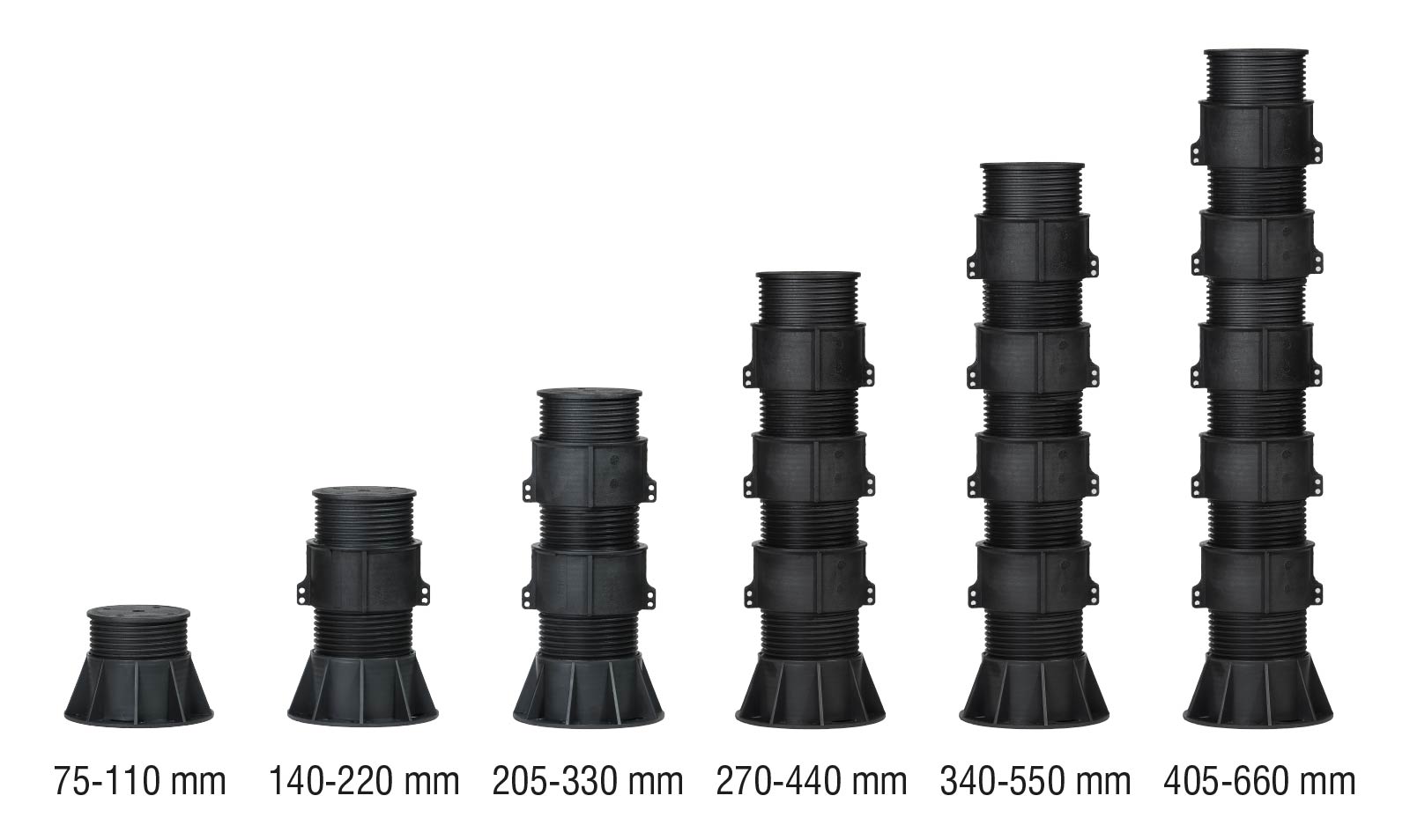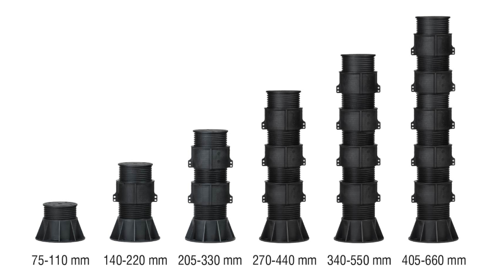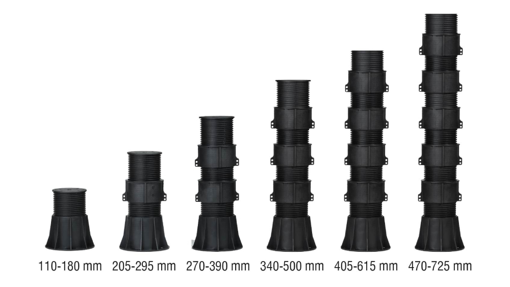 Nova-Pedestals are raised floor legs which can be used indoors and outdoors, with an adjustable height between 14-725 mm. Preferably used when decking applications are carried out, pedestal supports are particularly needed when elevation from the ground is required, providing easy installation due to height adjustability.