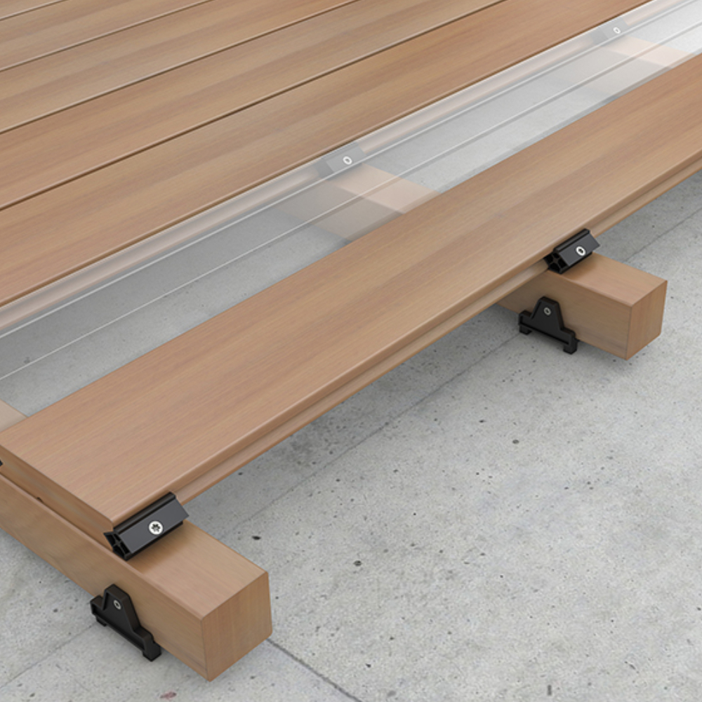Deck uygulamalarında üstten vida ile montajlı istenmeyen durumlar için özel tasarlanan gizli montaj detay aparatı olan Pi-Clips, aynı zamanda uygulama rahatlığı da sağlamaktadır.