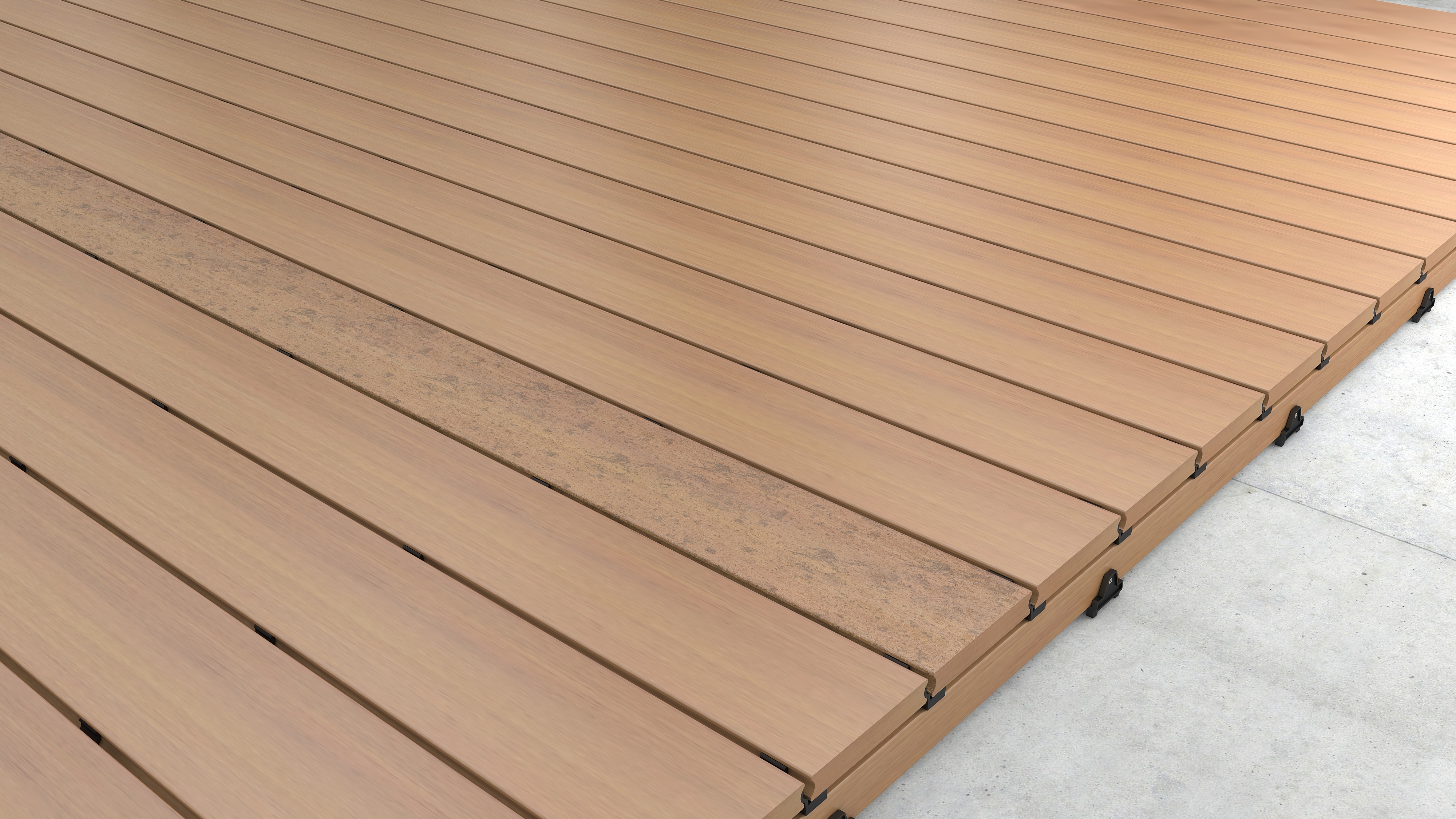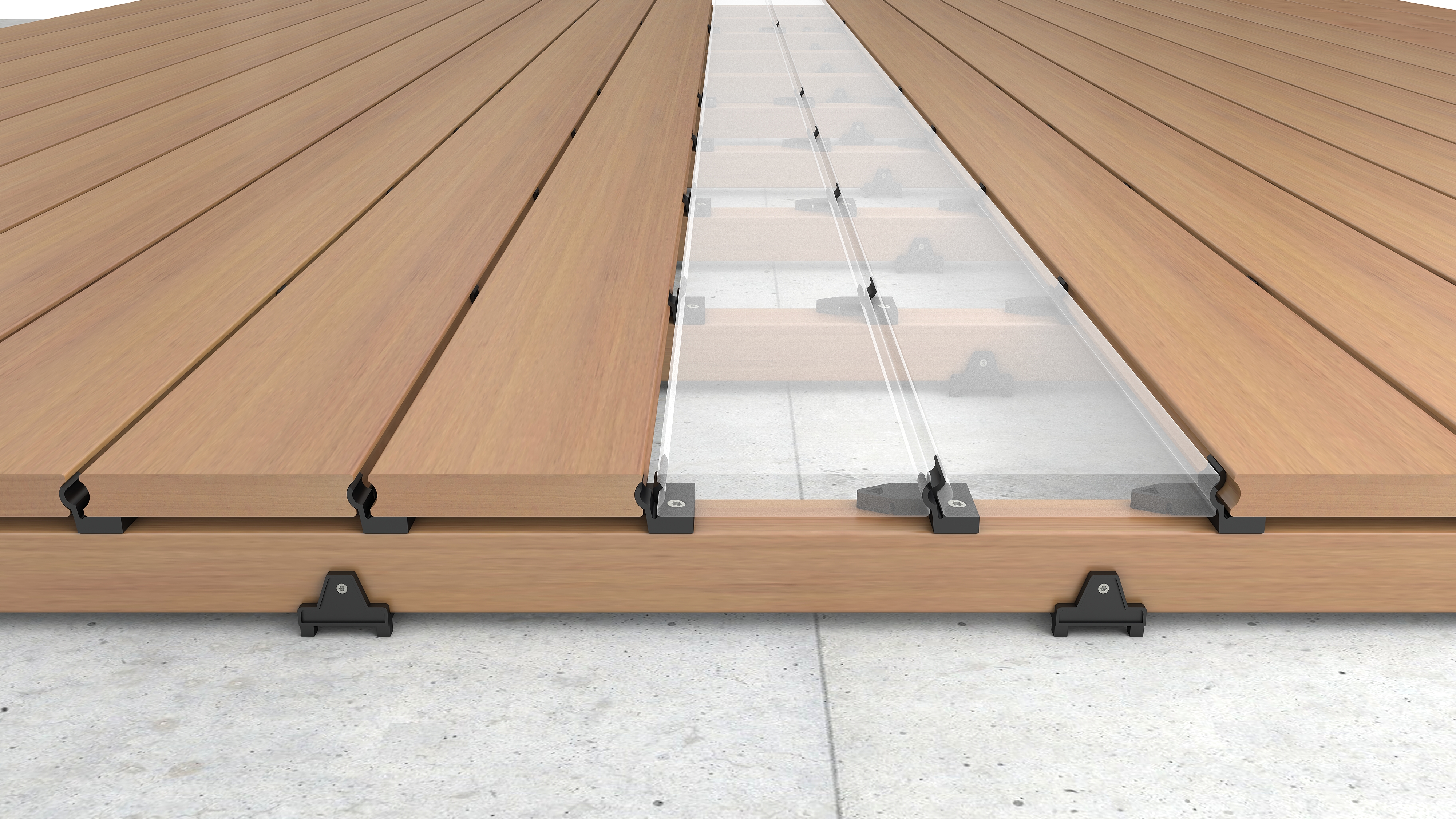 Teni, polioksimetilen POM'dan yapılmış, UV ve hava koşullarına dayanıklı, çok kolay ve basit kurulum sağlayan modifiye edilmiş bir başlangıç ve bitiş klipsi türüdür. Sistem birbirinden bağımsız iki koldan oluşmaktadır. Kolların bir tarafı tahtayı yerine sabitlemek için diğer tarafı ise ahşabın genleşmesini ve büzülmesini emmek için serttir ve deck tahtaları arasında 6mm boşluk oluşturur.